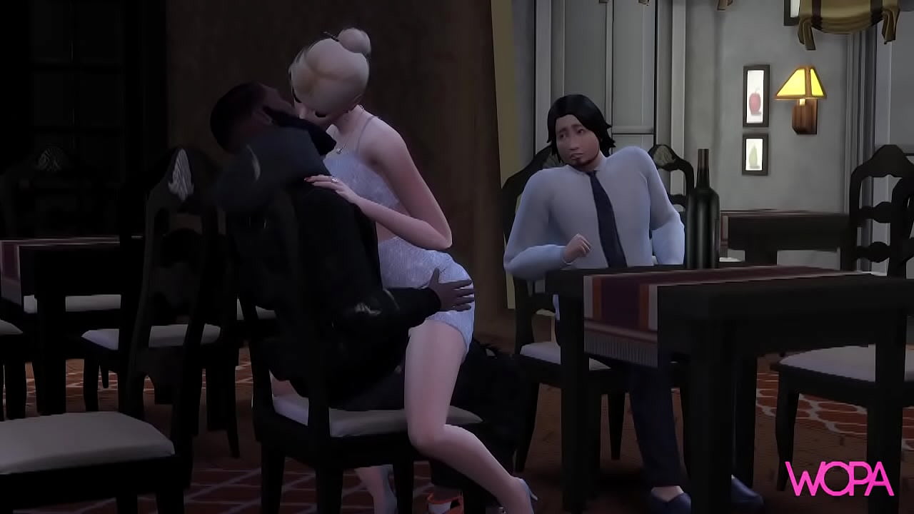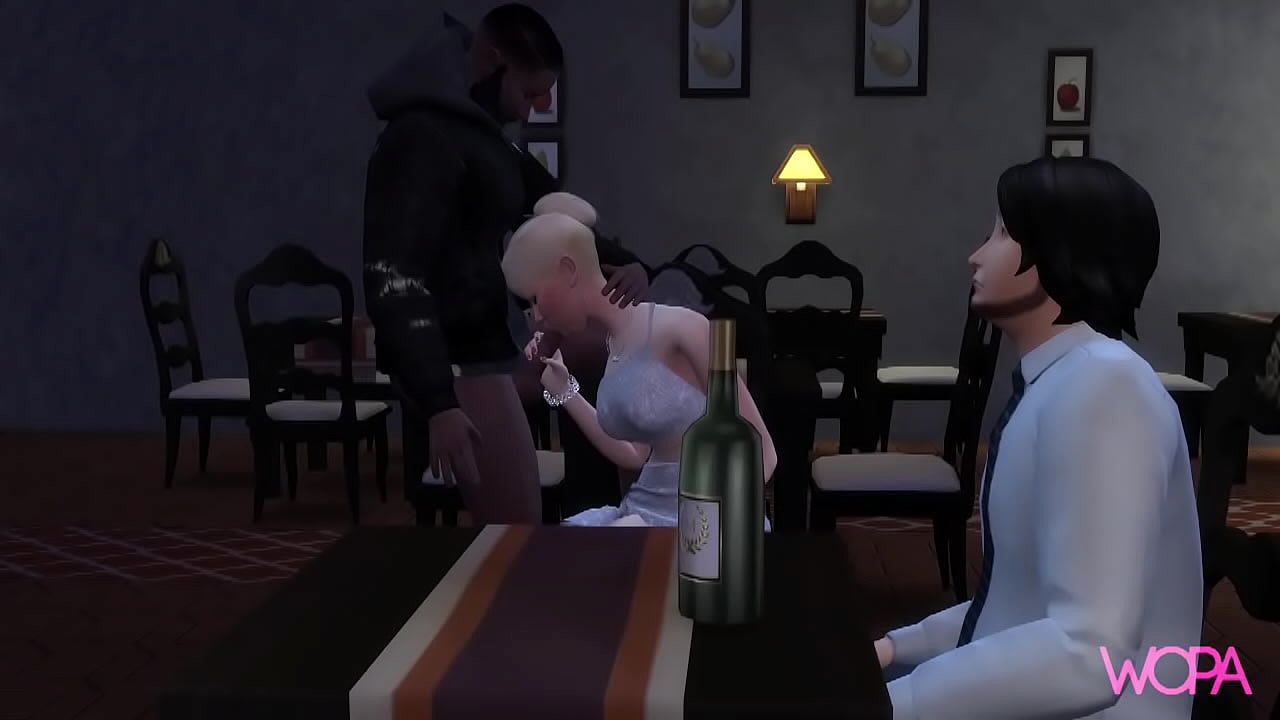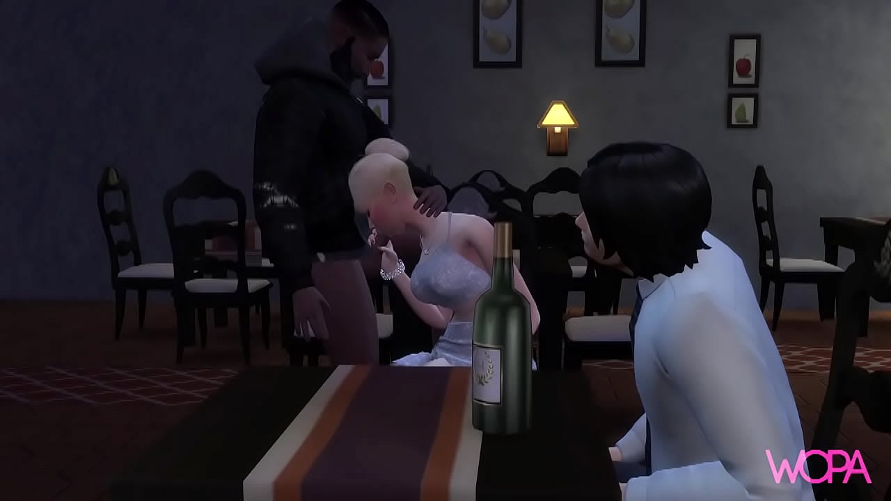 Cuckold masturbates while bbc fucks his blonde wife at the restaurant