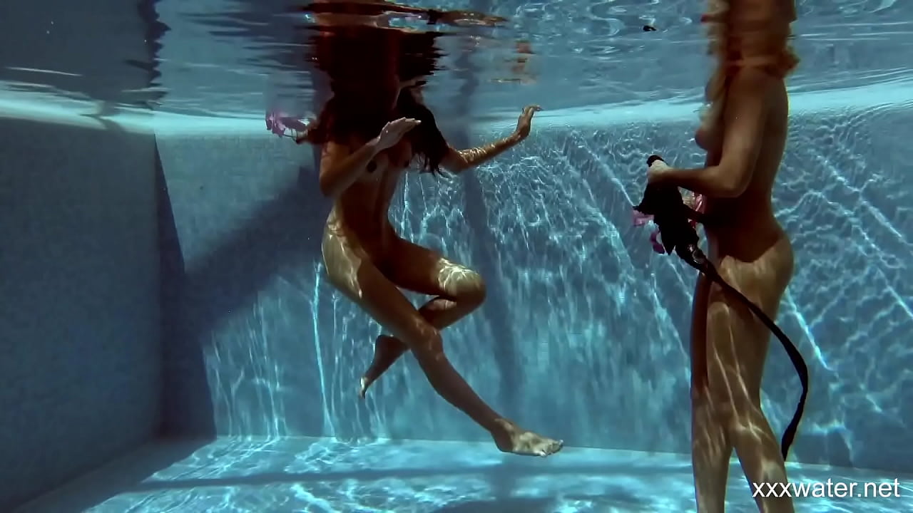 In the indoor pool two stunning girls swim