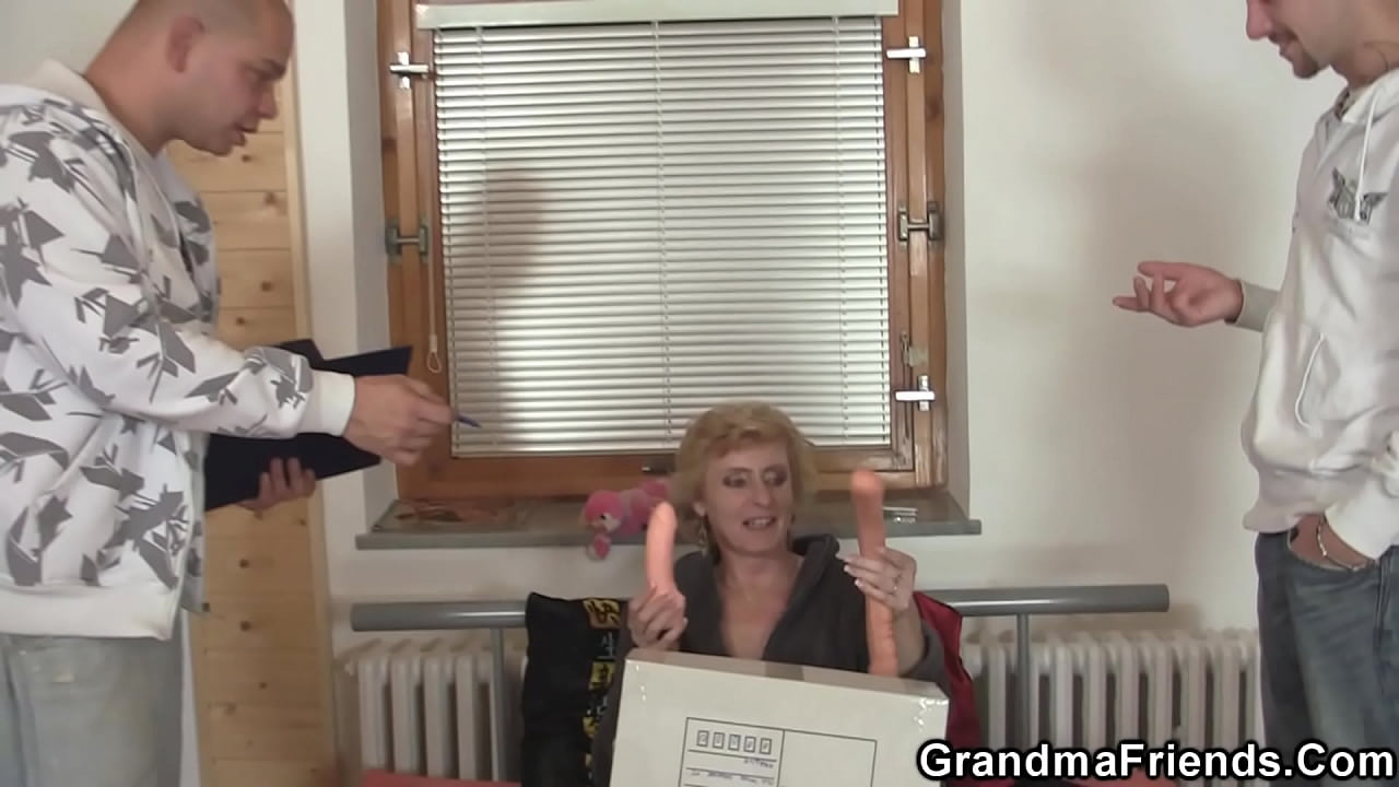 Two delivery boys nail small tits blonde granny