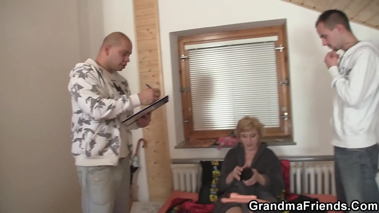 Two buddies pick up and bang old blonde granny